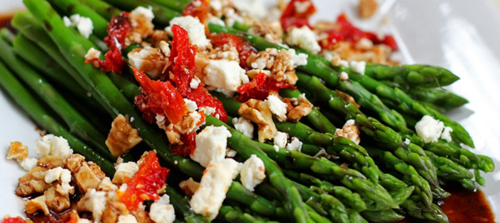 Aspargos e Salada de Tomate com Queijo de Cabra