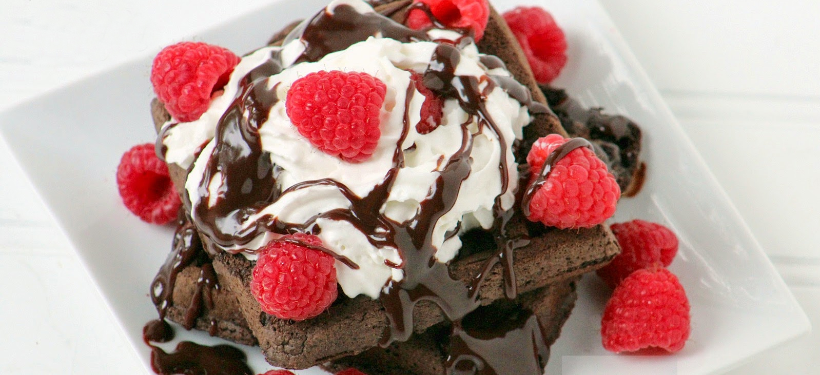 Sirva o brownie com o creme e frutas vermelhas por cima.