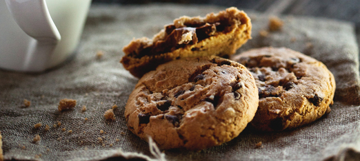 Derreta a manteiga (30 seg no microondas). Misture os líquidos (manteiga, gema, ovo e baunilha). Misture os sólidos (farinha, fermento, sal, açúcar mascavo e açúcar) em outro recipiente. Peneire tudo, misturando aos ingredientes líquidos. Misture bem com as mãos até ficar homogêneo. Coloque metade do chocolate picado e misture bem. Faça bolinhas com a massa e achate um pouco. Coloque em uma assadeira untada (margarina e farinha) e coloque o restante do chocolate por cima. Leve ao forno pré-aquecido à 180°C por 15 a 20 minutos.