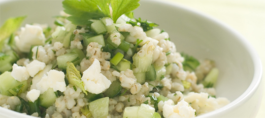 Adicione a água quente ao couscous, passe um PVC, e deixe por 15 minutos, logo após abra o recipiente e coloque a manteiga e as ervas já trituradas, tempere com sal e pimenta a gosto e sirva sua Receita de Couscous com Ervas quente ou frio.