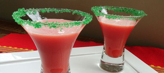 DICA: para deixar o drink com ares festivos, decore a borda do copo com açúcar colorido na cor verde. Molhe a borda do copo e/ou taça num pratinho de água e depois passe delicadamente no açúcar colorido.