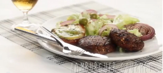 Hambúrguer Misto com Tomates e Cebolas Assadas